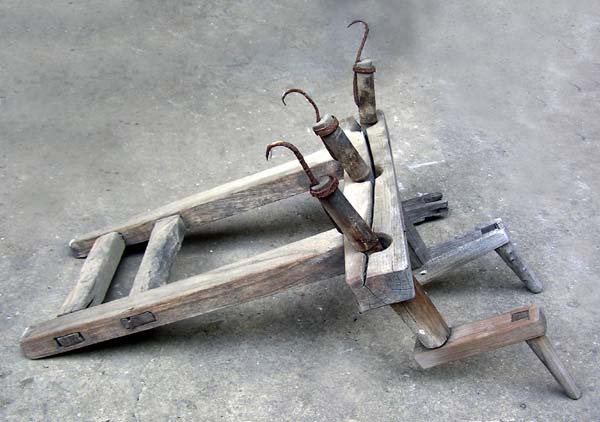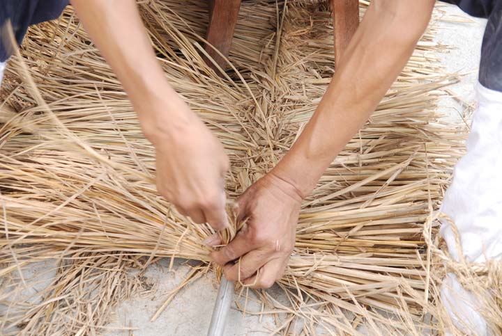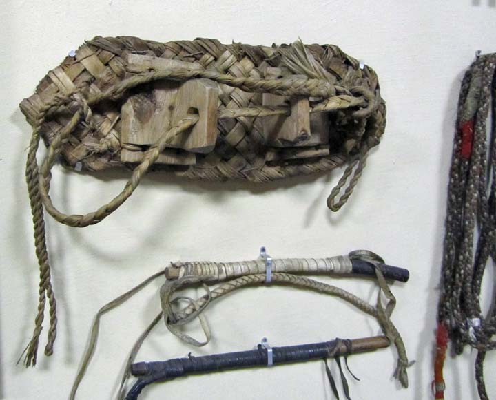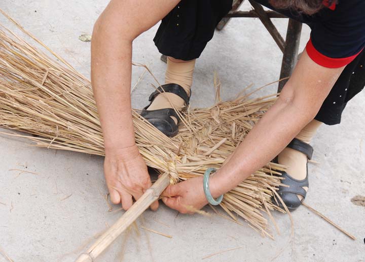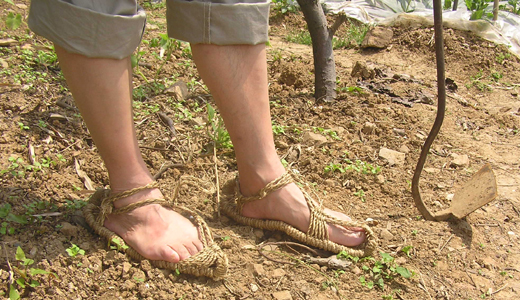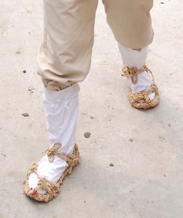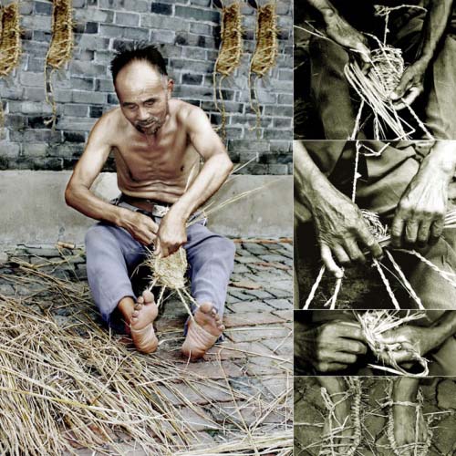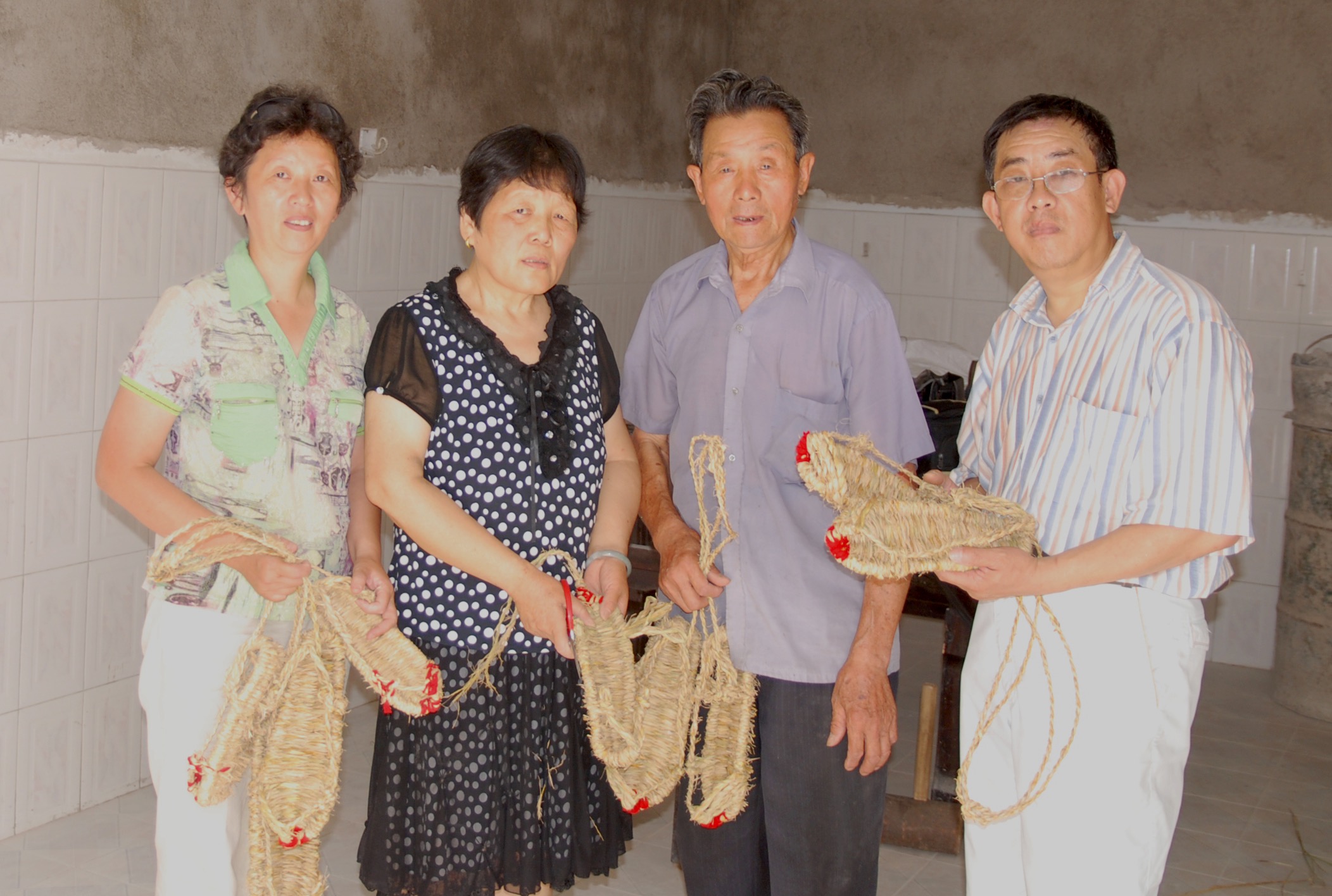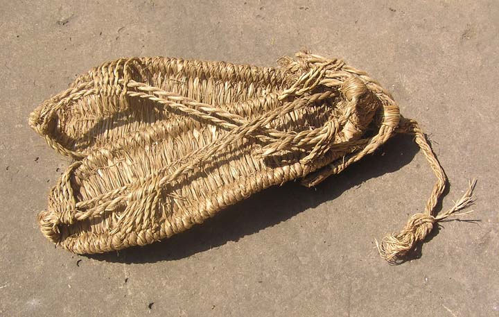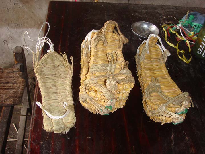 During the summer of 2010 Curator Ruixing Lu arranged for a colleague to visit weavers in Sichuan Province in the southwest of China. Representative straw sandals were collected along with a weaving frame all of which have been contributed to the Straw Sandals Project.