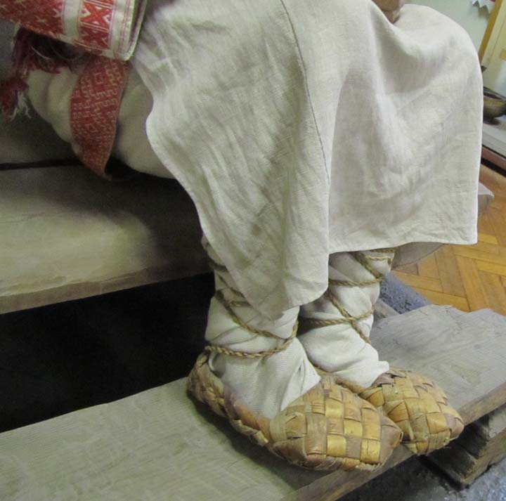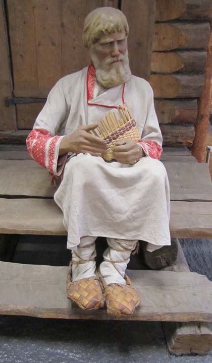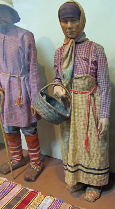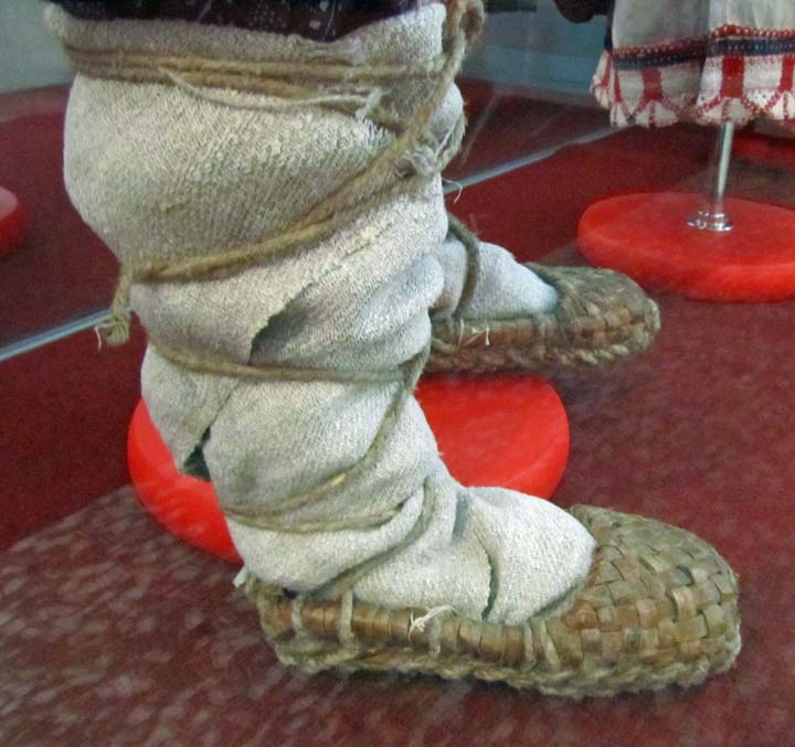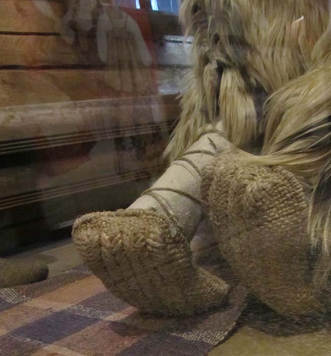 This museum contains more than a half million items about the cultural anthropology of the peoples of the old Russian Empire and the Soviet Union. It was started in 1902 and opened to the public in 1923. Notably it contains the collections of the former Museum of the Peoples of the USSR and the private collection of Prince Tenishev, a wealthy industrialist who documented the lives of Russian peasants. The gallery below was assembled from photographic images given to the Straw Sandals Project by Elizabeth and Philip Hooper. They were taken during their trip to St. Petersburg in September of 2010. The images show exhibits of sculpted figures of peasants dressed in traditional clothing and wearing straw sandals. The new pieces provided to us by this gallery are the views of how these sandals combine with the costumes of the time.