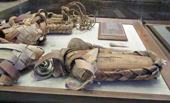 The ancestral origin of the Ainu has been a matter of speculation for many years. Origins in Siberia and a possible mixing with an ancestral Japanese subgroup have been suggested by recent studies but there were early speculations of an Eastern European origin based on the facial and other anatomical features of the Ainu. Genetic testing has been complicated by the inter-group marriages that have occurred. Dr. Paula I. Nielson has written a recent article about the current state of knowledge about Ainu origins. Modern Ainu culture has been dated back to 1200 CE but they have been in East Asia for much longer. The Ainu were prolific weavers and their style of weaving may offer clues to their origins and/or major influences on their culture. Larry Hightower took the photographic images in the gallery below during a trip to Sapporo in October of 2009.